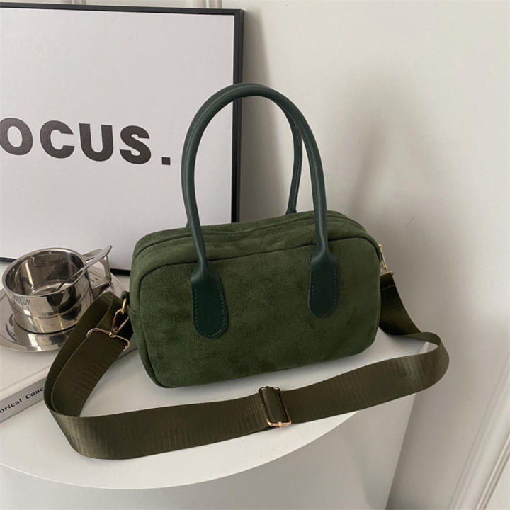 Luxury Boston Bag Large Capacity Crossbody Bag Suede Solid Color for Travel Work