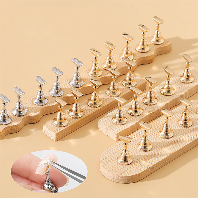 Magnetic Nail Holder Wooden Display Stand For False Nail Tips Gel Polish Showing Shelf Palettes Manicure Practice Tools Supply Natuo
