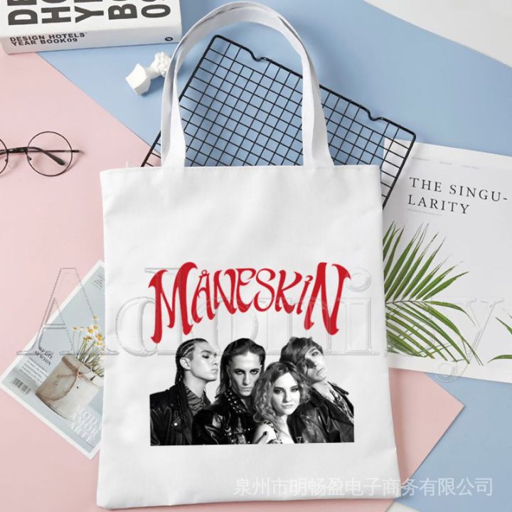 Maneskin Women Canvas Tote Bag Eco-friendly Shopping Bag Large Capacity Shoulder Bag For Women Foldable Beach Shopping Bag UNXY