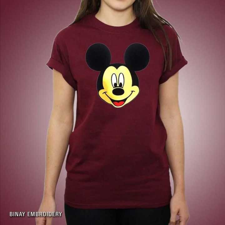 Maroon%20Cotton%20%20Printed%20T-Shirt%20For%20Women%20-%20Image%201