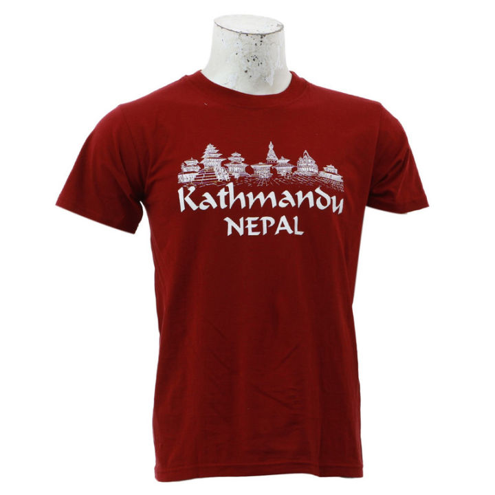 Maroon Cotton Round Neck Kathmandu Nepal Printed T-Shirt For Men