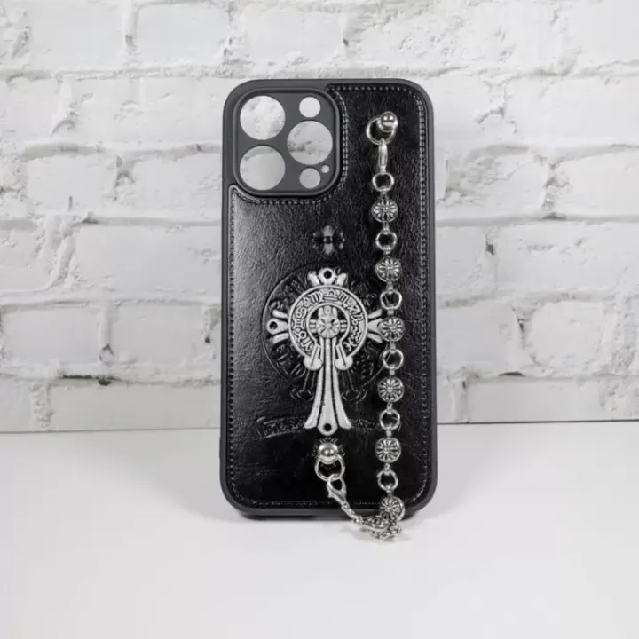 Masala Beads Metal Chrome Hearts Cross Leather Design With Chain Strap Stylish Emo Punk Fashionable TPU Soft Phone Case Cases Iphone Phone Cover