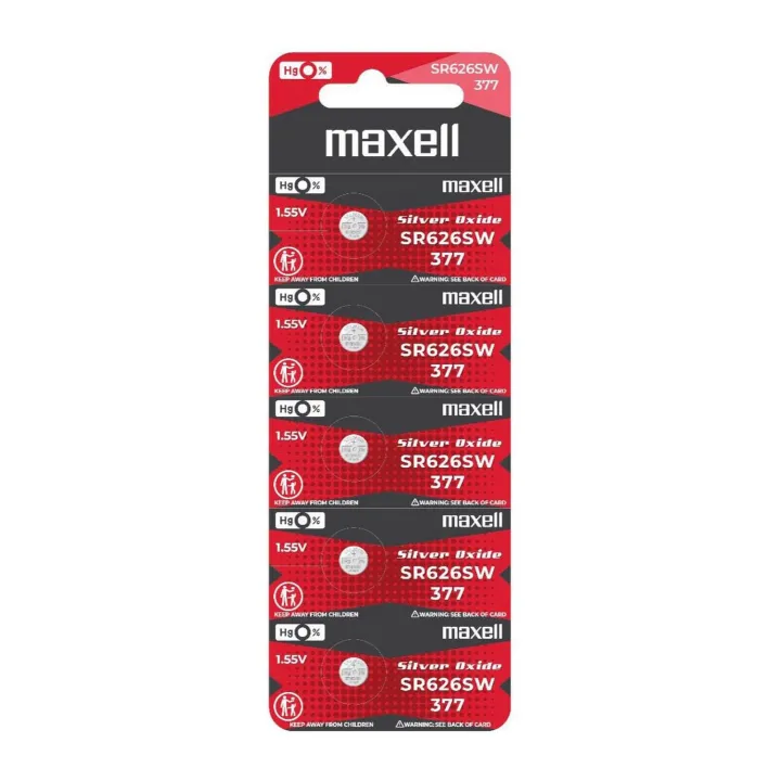 Maxell SR626SW 377 1.55V Mercury Free Silver Oxide Battery for Watch and Electronics