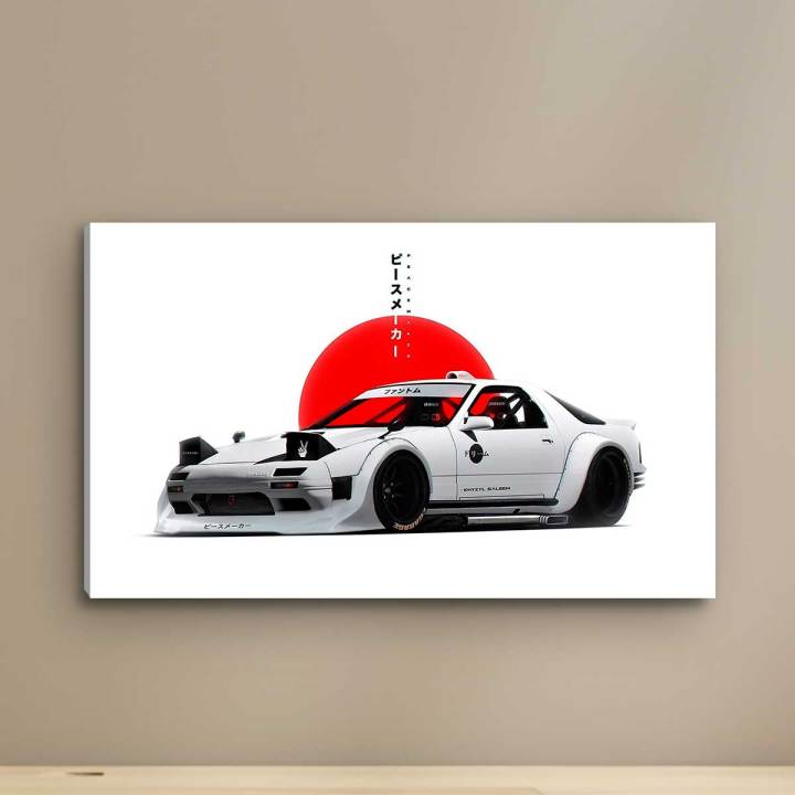 Mazda RX-7 Sports Car Illustration Wooden Framed Canvas Design
