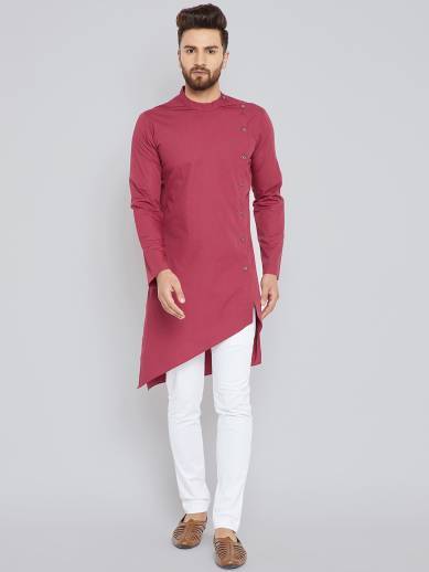 Men Solid Linen Cotton Kurta Pajama Set (Maroon)