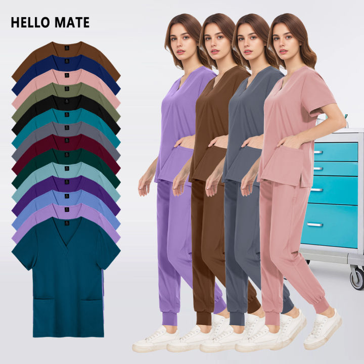 Men Women Jogger Suit Doctor Dentist Overalls Medical Nurse Surgical Uniforms Solid Color Pockets Elastic Quick-drying Top+pants