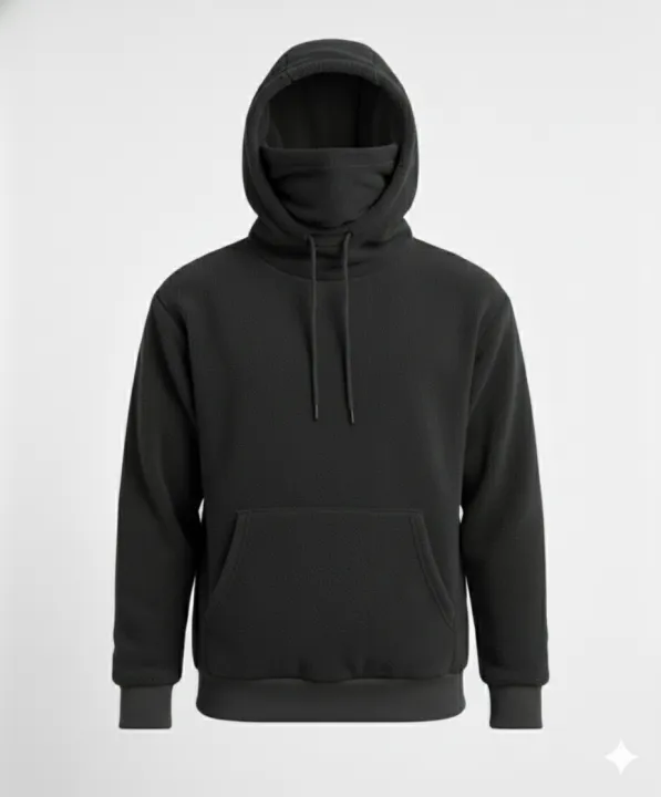 Men's Fleece Ninja Mask Hoodie - High Neck cover- Built-In- Face Covering