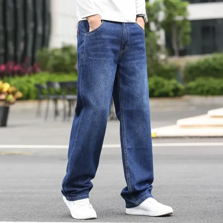 Men's Premium Loose Fit Baggy Jeans - Wide Leg Denim Pants - Classic Indigo Blue