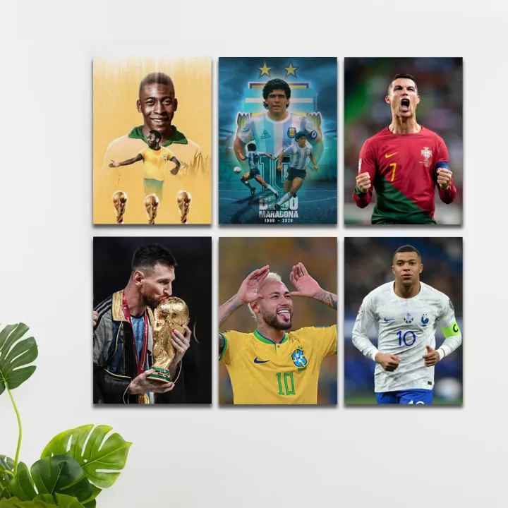 Messi Ronaldo Neymar Pele Maradona Mbappe 6 Pcs Poster
