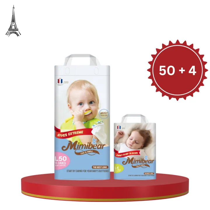 MIMIBEAR Large Size 54 Piece Pack Premium Baby Diaper Pant Style Free Wipes 55 Piece