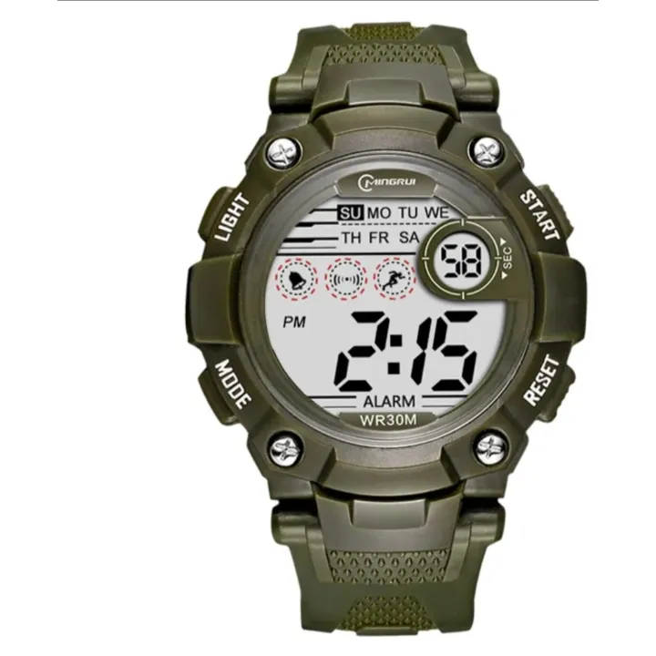Mingrui Unisex Army Green Color Rubber Strap Digital Watch