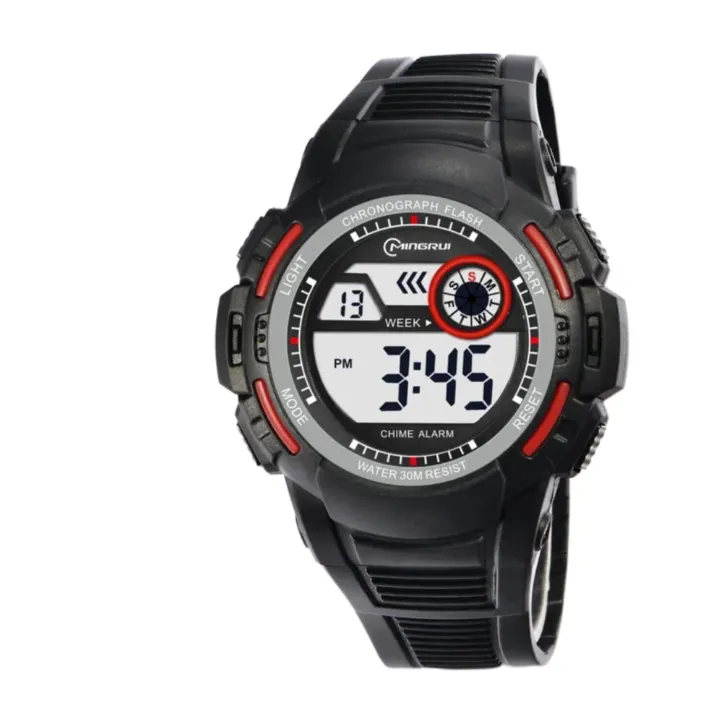 Mingrui Unisex Black Color Rubber Strap With Red Dial Digital Watch