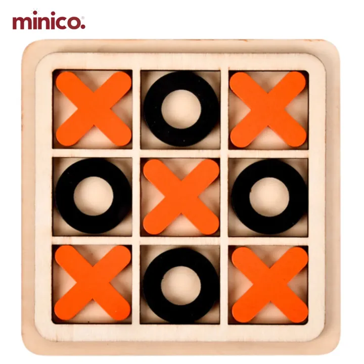 Minico Classic Tic Tac Toe Wooden Board Game – Educational & Strategy Game for Kids & Family | Travel-Friendly & Durable XO Puzzle Game (14cm x 14cm) Color May Vary