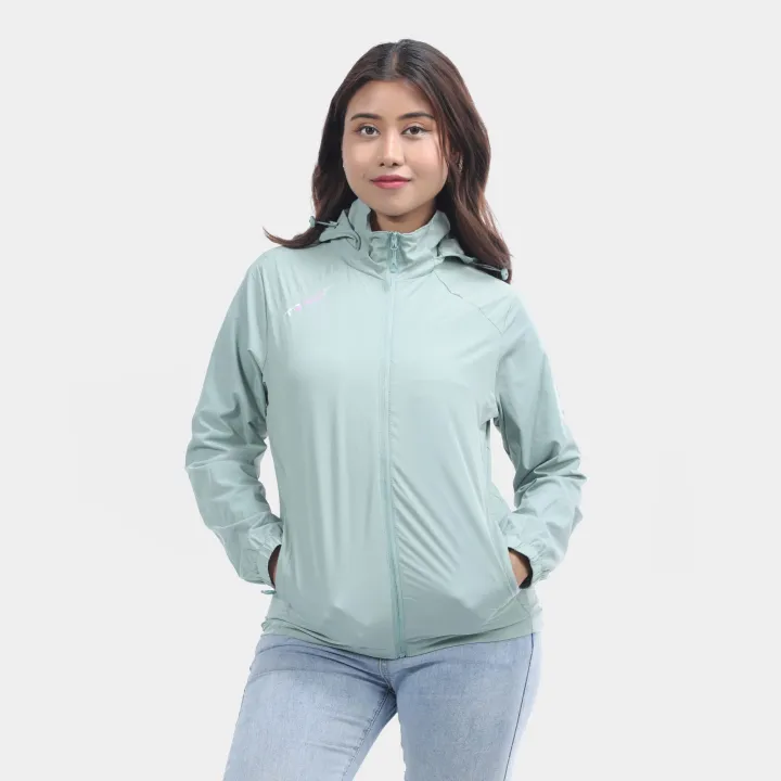 Mint Green Polyester Full Sleeve Front Zippered Design Windcheater For Women
