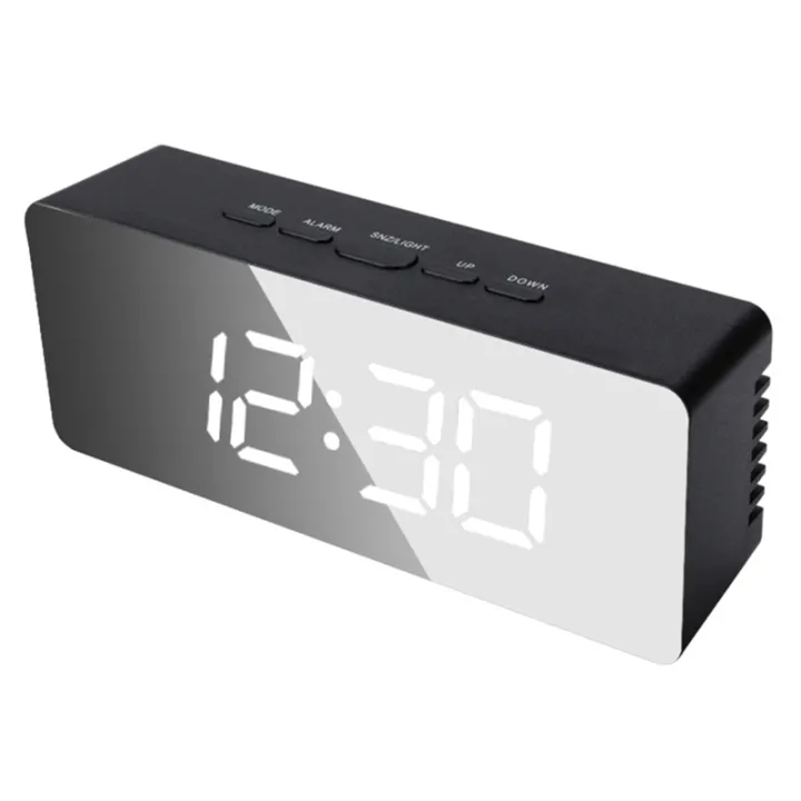 Mirror Digital Clock Bedroom Office Travel Electronic Table Clock Desktop Alarm Clock Temperature Function High Guality , Black