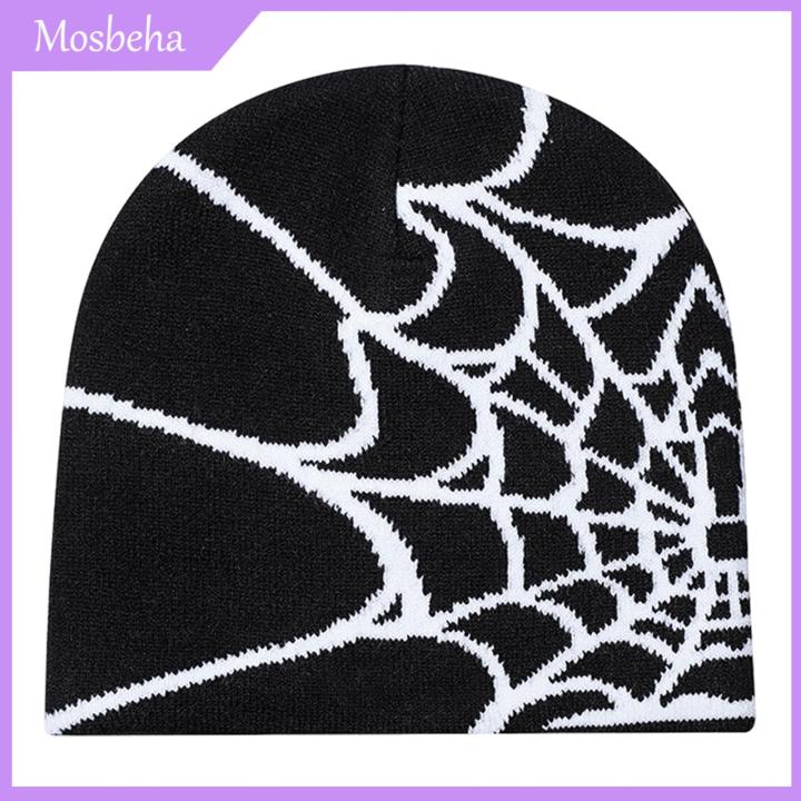 Mosbeha Dome Brimless Hat Spider Web Knitted Winter Hat Unisex Dome Cap for Cold Weather Cosplay Party Elastic Brimless Design with for Club