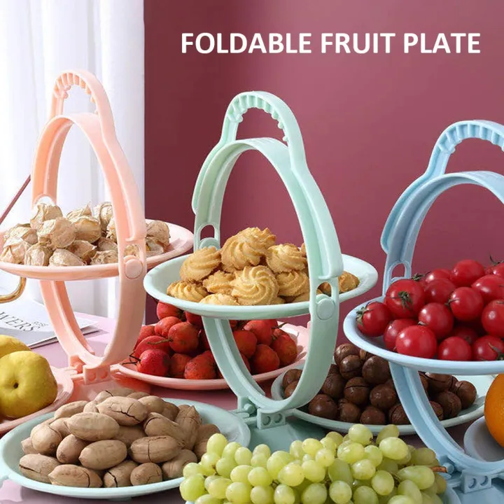 Multi-layer Folding Fruit Plate With Handle Rotatable Snacks Dried Storage Show Tray - Blue
