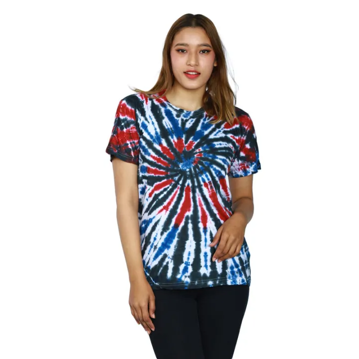 Multicolor Cotton Round Neck Tie-Dye Printed T-Shirt For Women