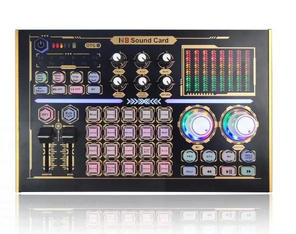 N8 Professional Recording Soundcard PC Mobile Phone Live Broadcast Sound Card Mixer Set Support 48V Mic PhPodcast Equipment
