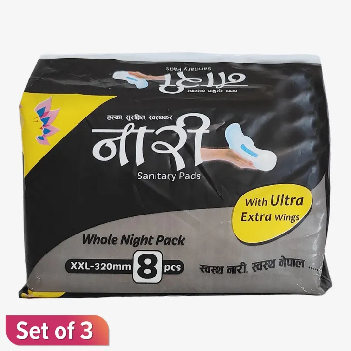 Nari Sanitary Pads Whole Night Pack XXL-320MM 8 Pcs With Ultra Extra Wings Set Of 3