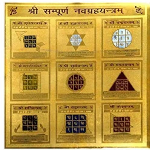 Navagraha Yantra -Sitare Shri Sampoorna Navagraha Yantra Gold Plated Puja Energised Copper Pooja Article Remove Bad Influences of 9 Planets