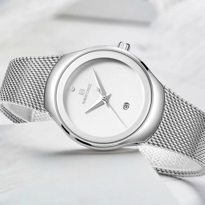 NAVIFORCE NF5004 Date Function Stainless Steel Mesh Ladies Watch For Women – Silver