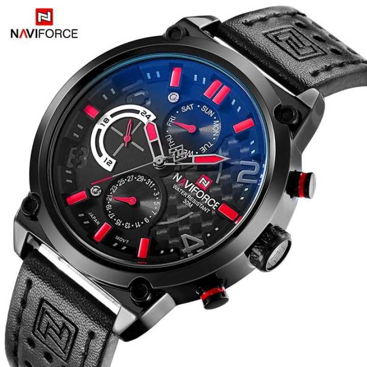 NAVIFORCE Nf9068 Chronograph Date/Day Genuine Leather Strap Edition Quartz Sport Watch Relogio Masculino For Men