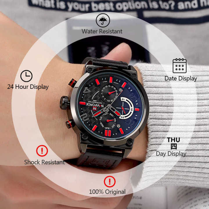 NAVIFORCE%20NF9068%20Chronograph%20Watch%20With%20Leather%20Strap%20For%20Men%20-%20Black/Red%20-%20Image%201