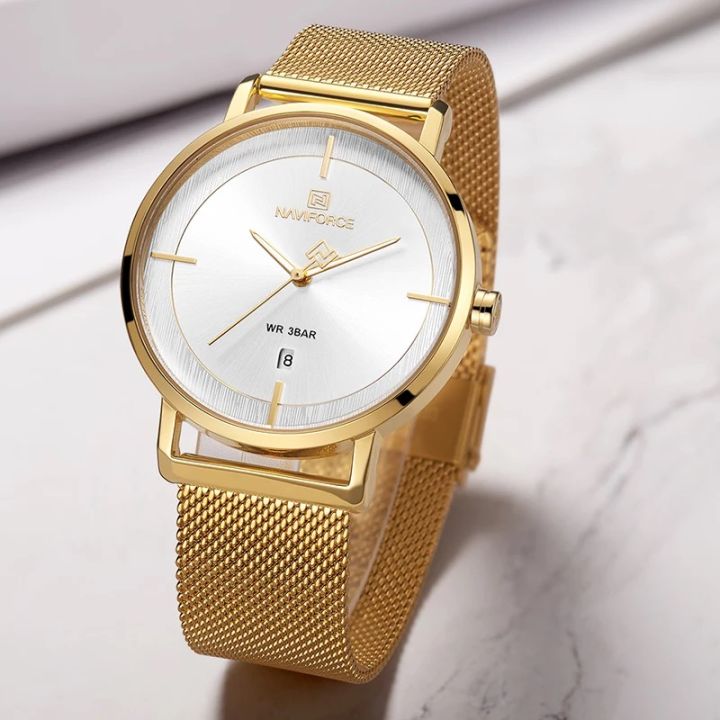 NAVIFORCE Top Brand Luxury Golden White Fashion Business Casual Premium Pretty Waterproof Warranty Wristwatch Watch For Women