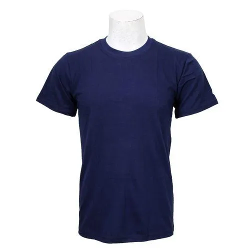 Navy Blue Round Neck Plain 100% Cotton T-Shirt For Men