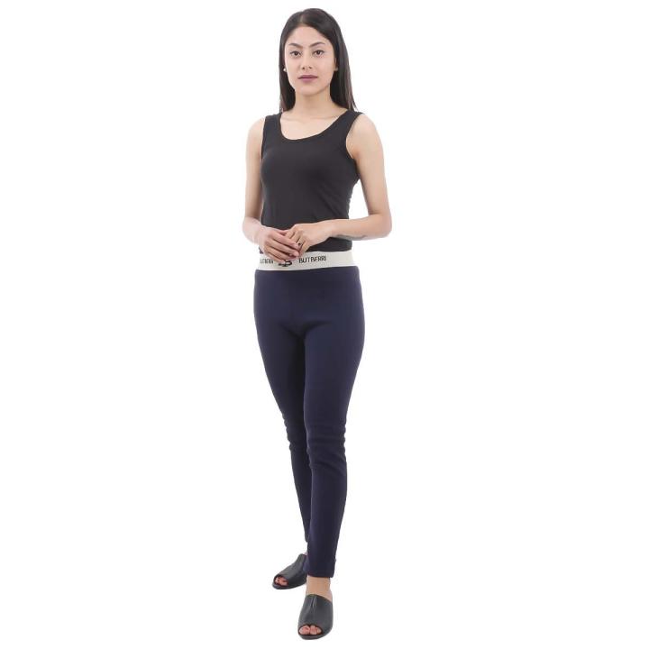 Navy Solid Inner Fleece Leggings For Women