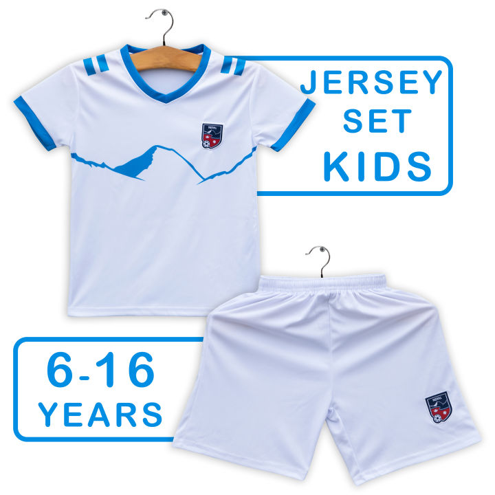 Nepal Football White Jersey Set For Kids | White | Nepal Kids Jersey Set | 6-16 Years