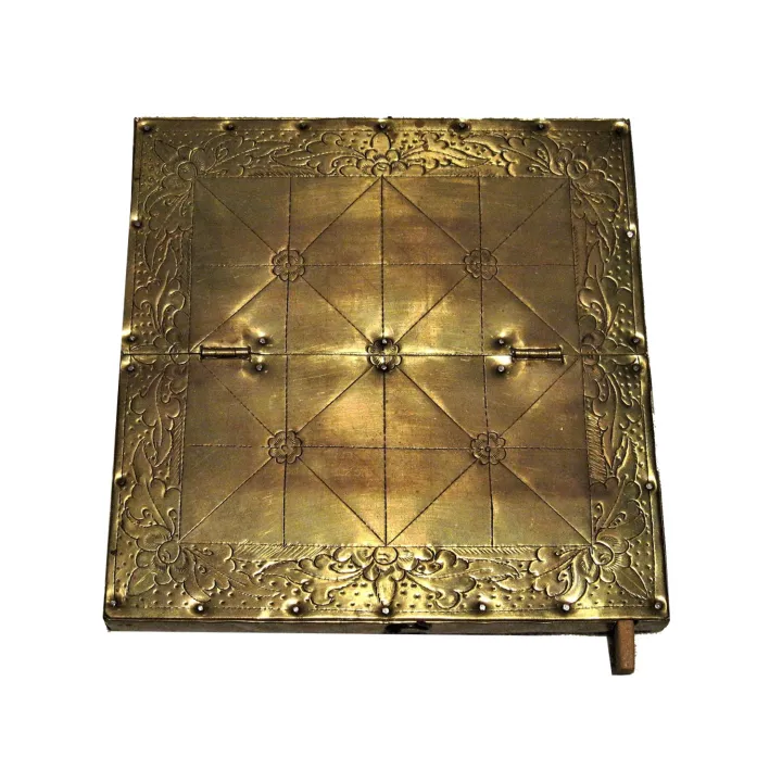 Nepalese Brass Baghchal Tigers and Goats Strategy Board Game With Pieces 8 Inches