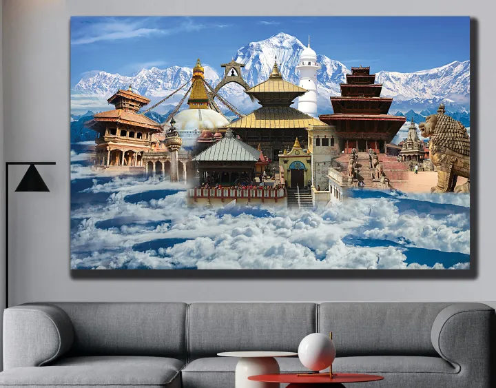 Nepali Cultural Heritage Temple Canvas With Wooden Framming For Wall/Home/Living Room Decoration (24inch by 18inch)