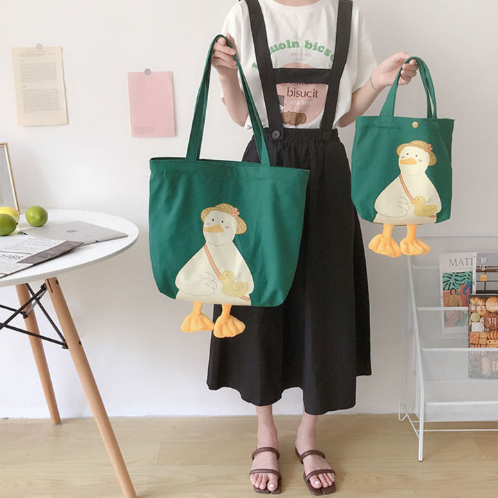 New Canvas Cartoon Handbags Eco Duck Print Cute Duck Tote Bag Soft Duck Embroidery Crossbody bag