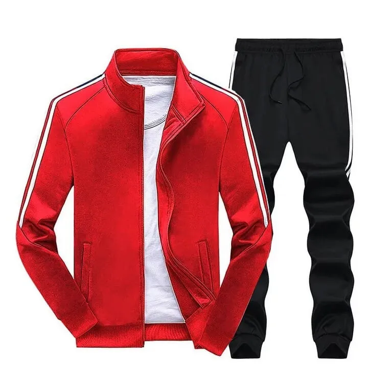 New Men's Set Spring Autumn Sportswear 2 Piece Sets Sports Suit Tracksuit.(AD Red)