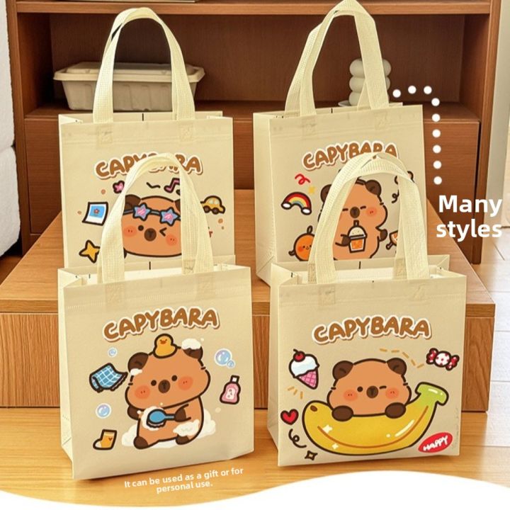 New%20Non-woven%20Capybara%20Tote%20Bag%20Reuse%20Shopping%20HandBag%20Cartoon%20Capybara%20Birthday%20Gift%20Bag%20Portable%20Capybara%20Print%20Canvas%20Bag%20-%20Image%201