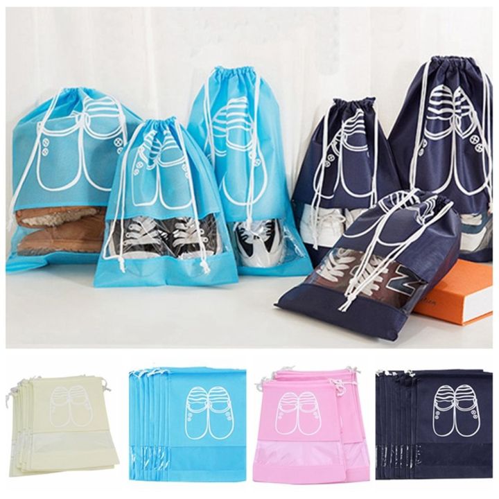 New Non-woven Shoes Pouch Drawstring Portable Shoes Storage Organizer Bags Organization Waterproof Transparent Hanging Bag Home