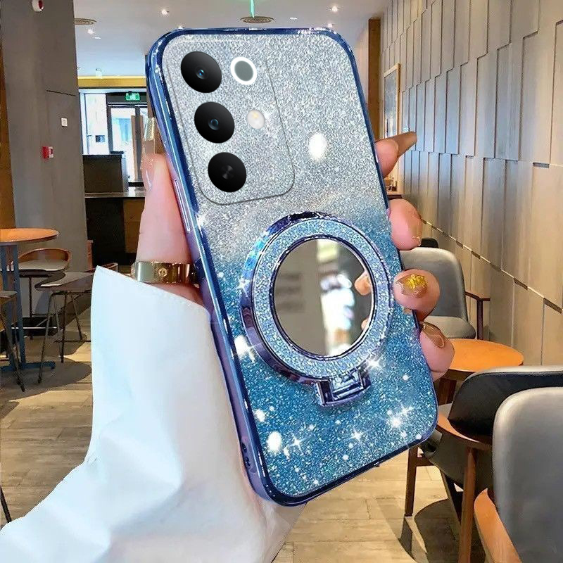 New Phone case Realme C85 Pro Back cover with Makeup Mirror Holder Stand Luxury Shiny Gradient Plating Glitter Slim For Realme C85 case