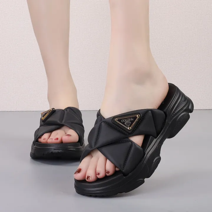 Newcomer Korean Summer Cross Design Thick Sole Slipper Sandal For Women - Multicolor |Fashion Summer Slipper For Women