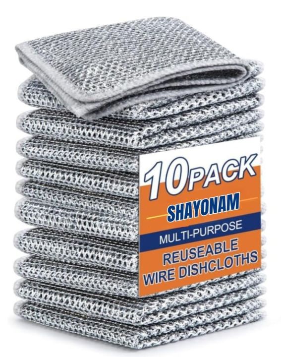 Non-Scratch Dish Cloths Heavy-Duty Wire Dishwashing Rags for Kitchen | Multipurpose Wire Dishwashing (Pack 10)