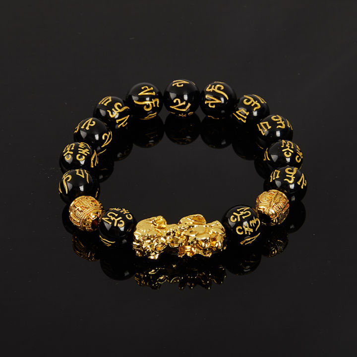Obsidian Bacelet Unisex Wristband Gold Black Pixiu Wealth and Luck Bracelet MNP