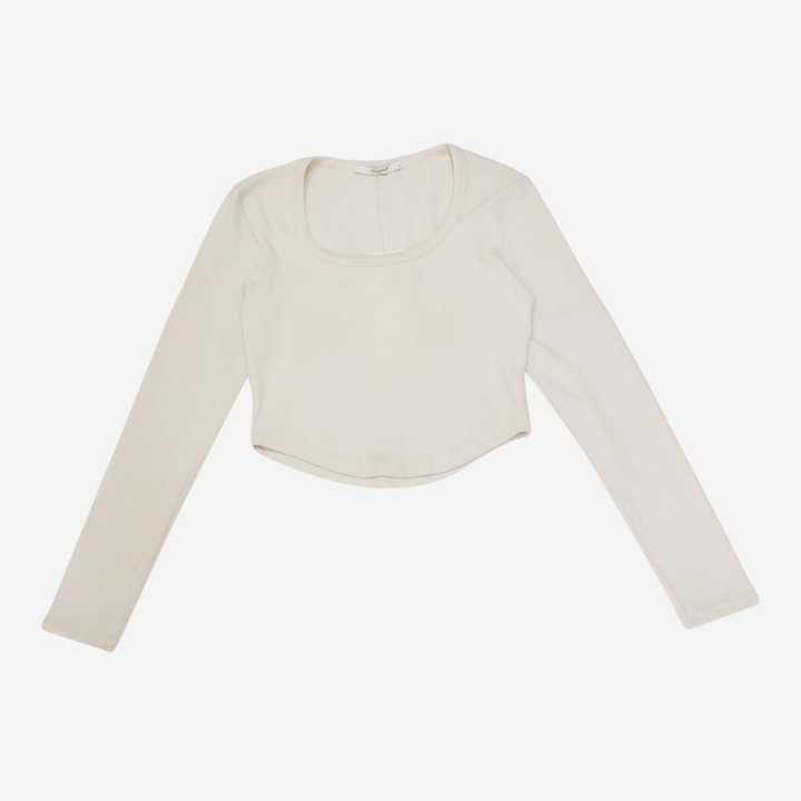 Off-White Plain Full Sleeves Crop T-Shirt For Women