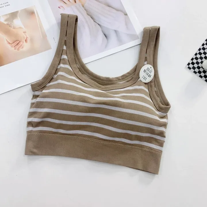 One-piece Cup Sports Vest Beautiful Back Women's Double Shoulder Stripes Tank Top Thin High-elastic