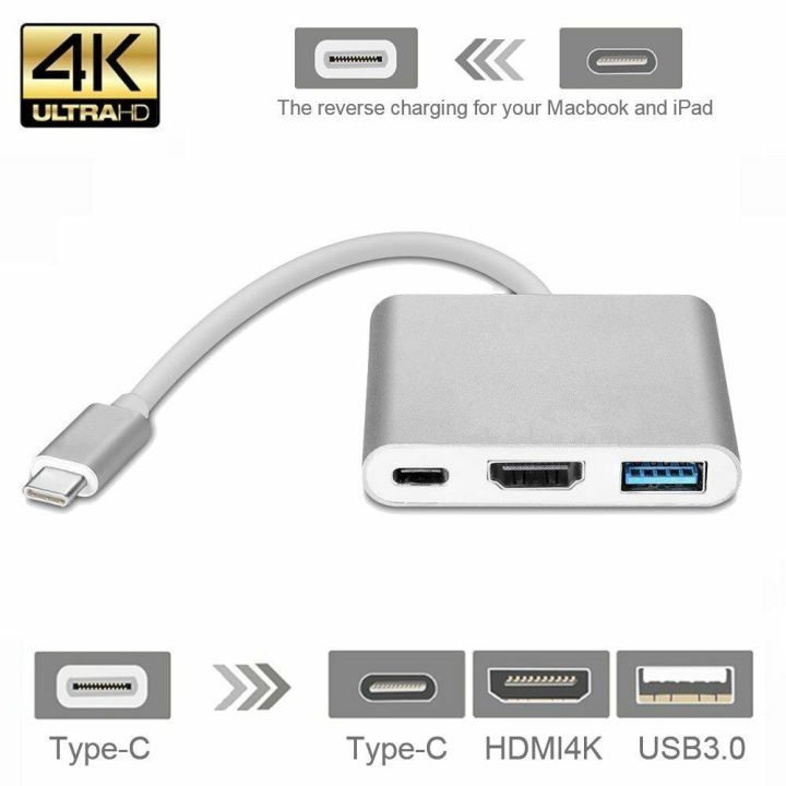 Original 3 in 1 USB 3.1 Type C to VGA Adapter Multiport USB 3.0 Hub with Type-C Female Charging Port & Video Converter for MacBook Pro