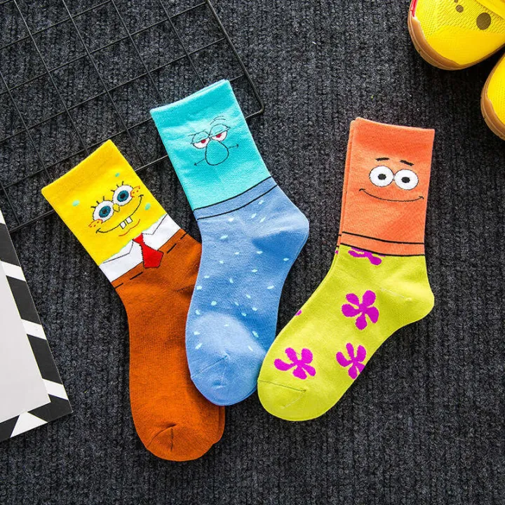 Owen 5 SpongeBob SquarePants Squidward Trendy Patrick Star Egyptian Basketball Autumn Winter Mid-Calf Mens Cotton Socks