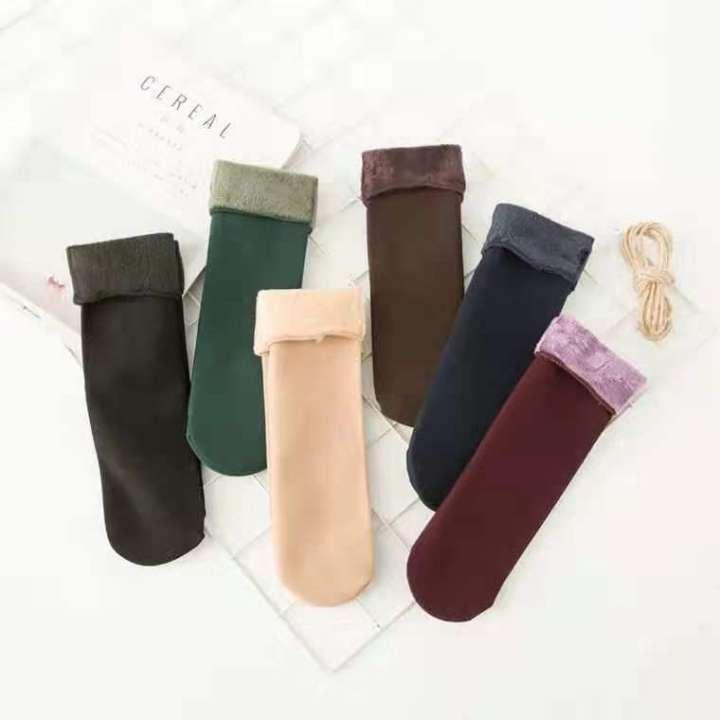 Pack of 12 (6 Pairs) Women Velvet Fur Inside Winter Socks - Multicolor