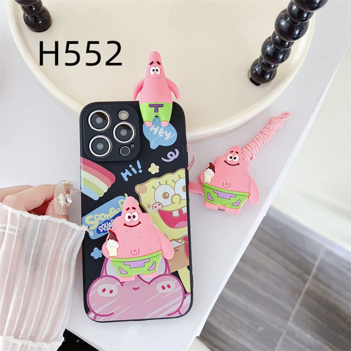 Patrick Star Casing iPhone 16 15 Pro Max 15 Pro 15 Plus 15 14 Pro Max 14 Pro 14 Plus 14 Cartoon SpongeBob SquarePants Lanyard Strap Silicone Shockproof Phone Case
