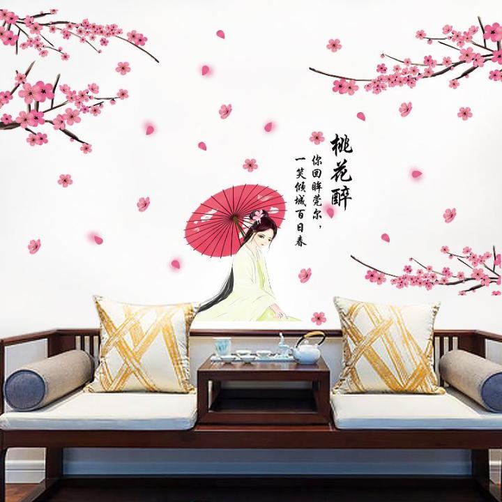 Peach Flower and Girl Wall Sticker 145cm(W) x 95cm(H)