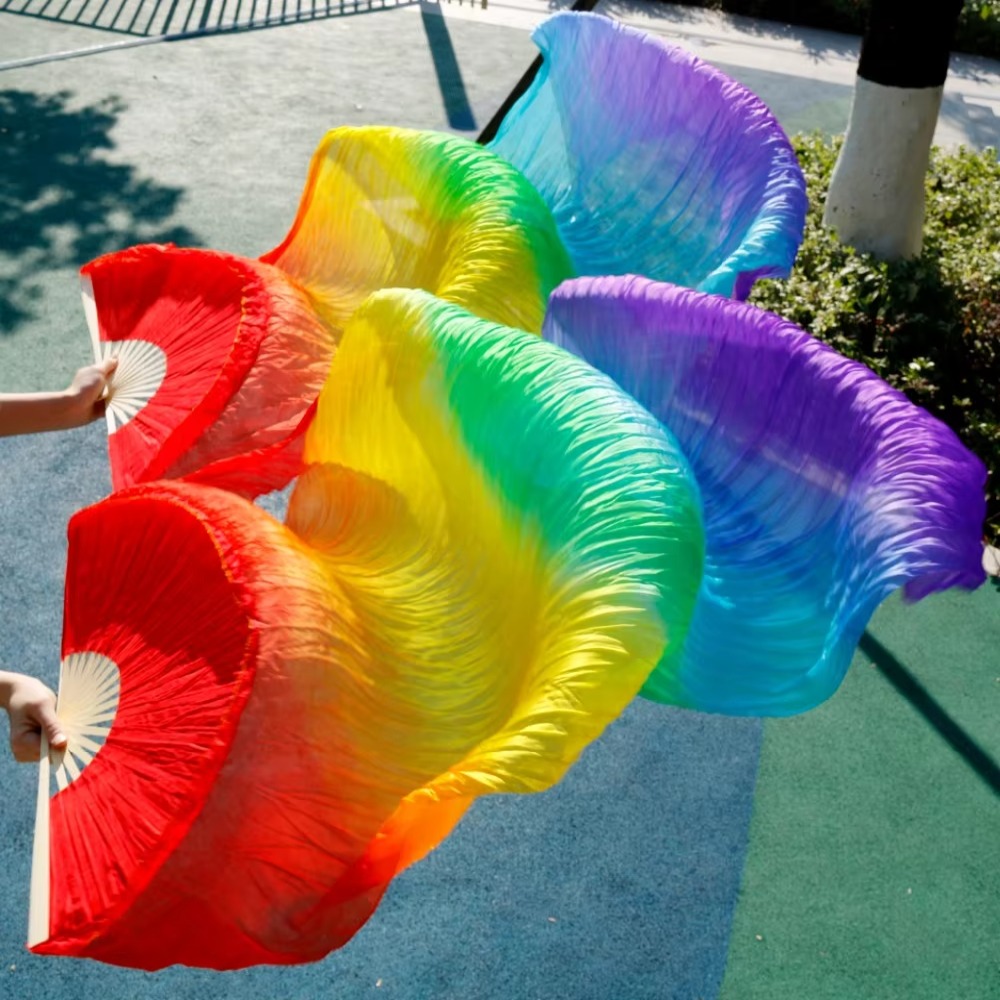 Performance Props 150cm Belly Dancing Fan Imitation Silk Bamboo Dance Long Fan Gradient Color Chinese Style Yangko Dance Props Women